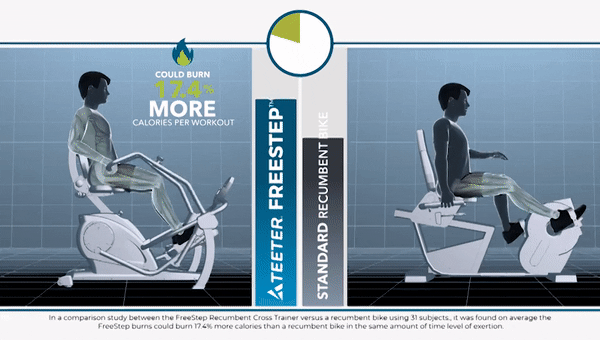 The FreeStep cross trainer by Teeter is an exercise machine designed to provide a low-impact, full-body workout. It features a unique stepping motion that targets the muscles in the legs, hips, and glutes, while also engaging the upper body and core through the use of resistance bands.