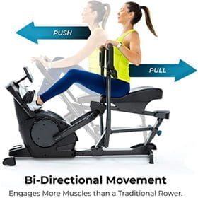 Full Body – The bi-directional resistance feature of the Power10 engages more muscle mass than traditional rowing machines for a full body workout.